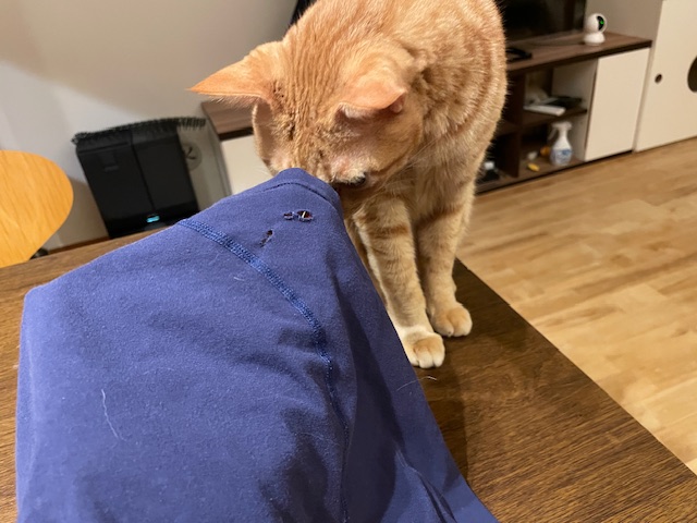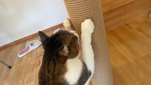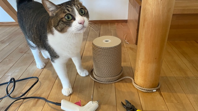 完成した爪研ぎ柱を真っ先に試したのはダンスィー承太郎